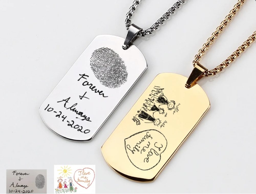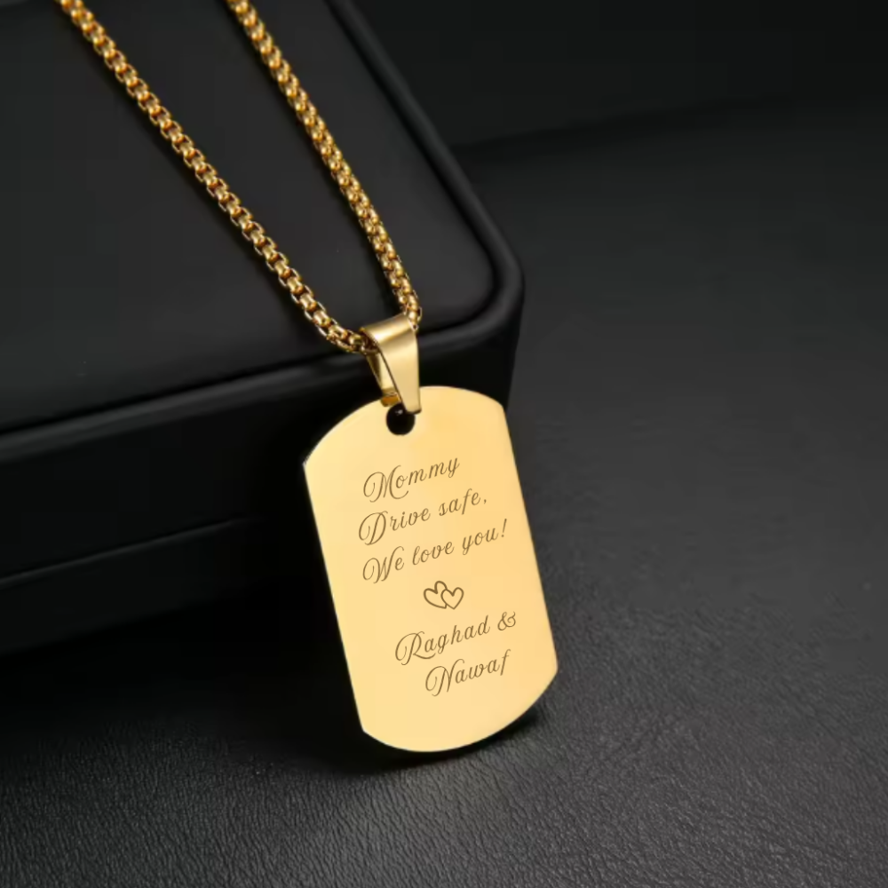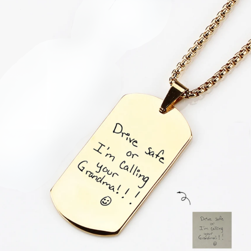 تعليقة سيارة، سلسال بحفر ليزر، ميدالية اسم/عبارة، خط يد، رسمة طفولية، بصمة إصبع، هدية شخصية، هدايا عيد ميلاد للبنات، هدايا تخرج للبنات، تذكارات أنيقة، هدايا للرجال والنساء.